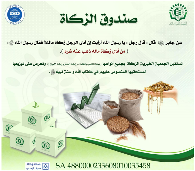 تستقبل الجمعية الخيرية الزكاة و الصدقات بجميع أنواعها و تحرص على توزيعها لمستحقيها المنصوص عليهم في كتاب الله و سنة نبيه صلى الله علية و سلم